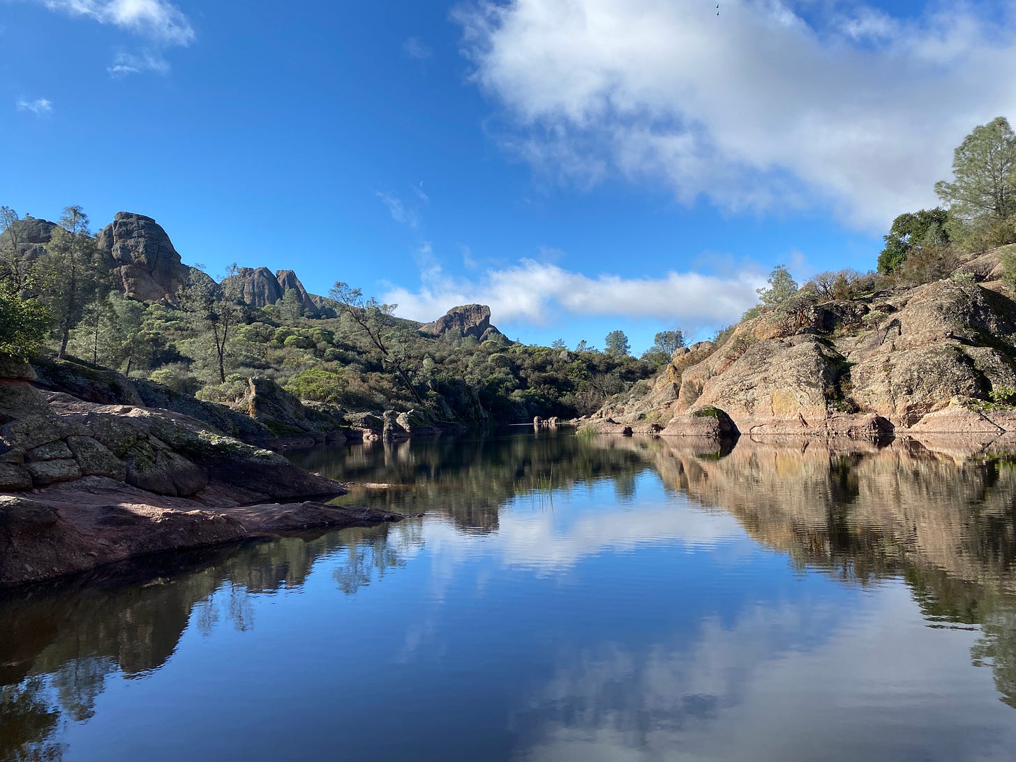 The sky reflects so perfectly in the reservoir that I feel whole. On yet another outdoor adventure — the first of this year — my dad and I had just crawled through caves and up countless rocky steps, past several rogue streams and waterfalls to arrive here. It’s pleasant, unusually quiet. In my head, “Landslide” begins to play. Oh, mirror in the sky/what is love?/Can the child within my heart/rise above?